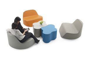 FEEK is made of soft coated foam in all kinds of great shapes and a variety of both punch and more subdued colors. There are a selection of chairs, benches and occasional tables, plus in the near future we’ll be able to offer custom shapes and colors as the European FEEK factory has done for years. FEEK is tough, too; it is puncture resistant and comes clean with a wipe-down. Just keep permanent markers away from it, unless you want to make it a canvas! FEEK is covered by a 3 year warranty.