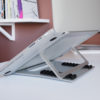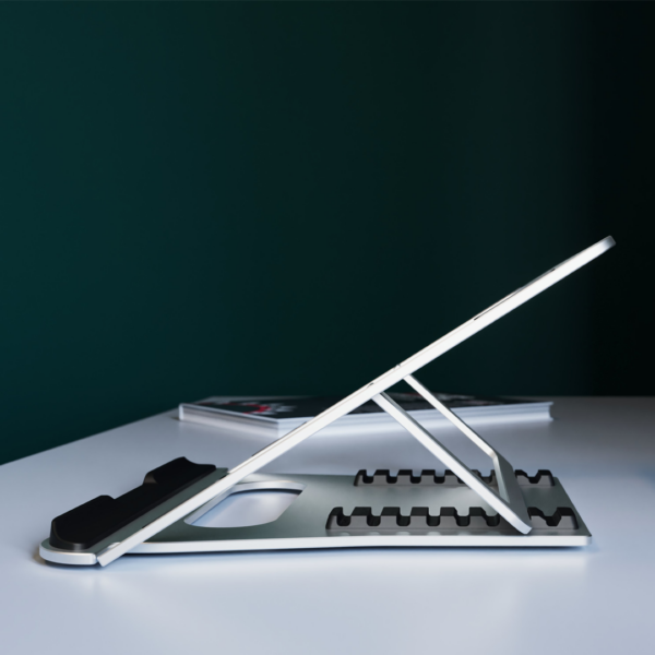 Our Elevate laptop riser changes the game and solves all those problems at once. It folds completely flat and comes with its own small travel bag to fit right inside your computer bag. Its lightweight milled aluminum and rubber design make it easy to transport to every location you need. If you’re looking for an easy-to-use, sophisticated and simple laptop stand that actually works, the Elevate is the answer.