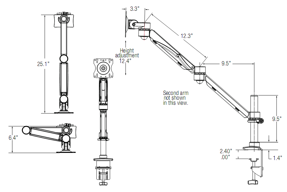 Measure your monitors carefully. Monitors are sold by diagonal measurement of viewable screen area, so it important to make sure you are aware of their actual heights and widths. For standard single mount version he maximum separation between the center of each VESA mounting plate on this unit is 39″. So, for instance, if the total width of each monitor in the orientation you are setting up cannot exceed 39″ if they are the same. The optional Dual Mount Hub will add another inch of separation per monitor. Don’t know which Monitor Arm to choose? Call us… we’re the experts!