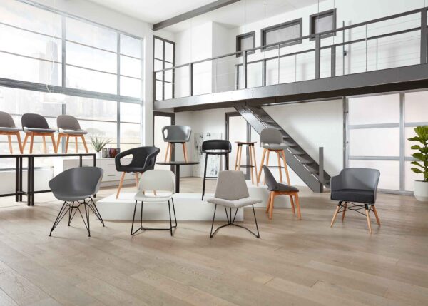 Elegant Amos offers a plush and comfortable sit for long meetings and endless projects. It’s just as chic as it is practical—and the neutral pallette and spare angular design just look great.