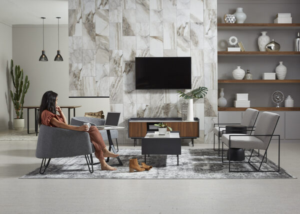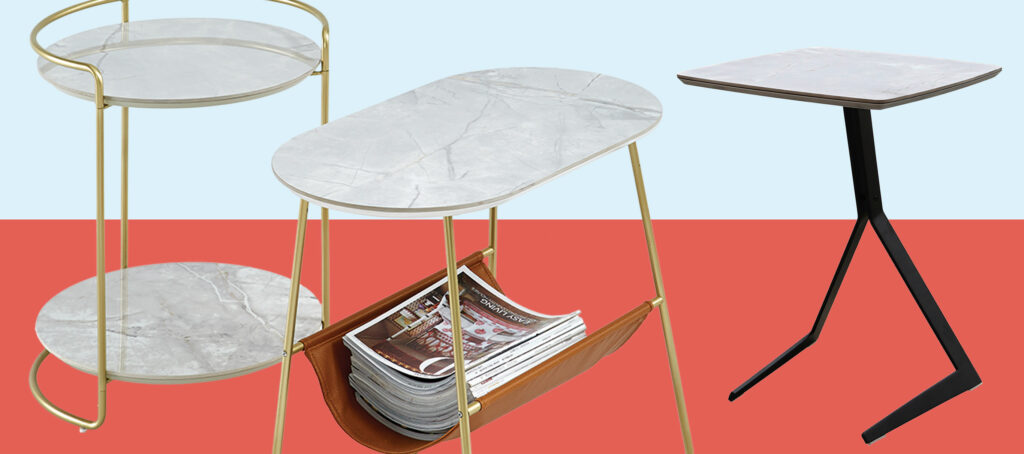 Holden’s gracefully contoured tops emulate the look and feel of fine marble while creating versatile storage and display options all over the home. The Pull-Up model is especially useful for turning any space into a more productive workspace… even the sofa. The more traditional occasional looks feature complementary golden trim to introduce a bit of nostalgia that is right on trend.