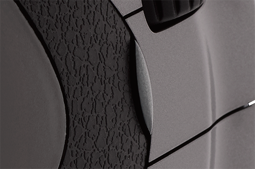 Your fingertips rest in a shallow groove on the buttons. This patented innovation secures the mouse in your hands and makes moving it much more precise.