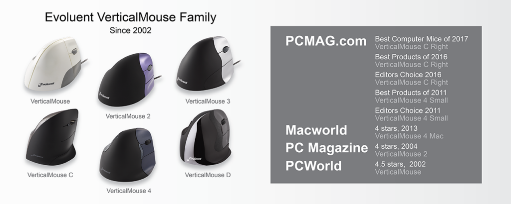 The ergonomic shape supports your hand in a handshake position. Since 2002, users continue to report that Evoluent VerticalMouse provides superior comfort and even relieves their wrist pain.