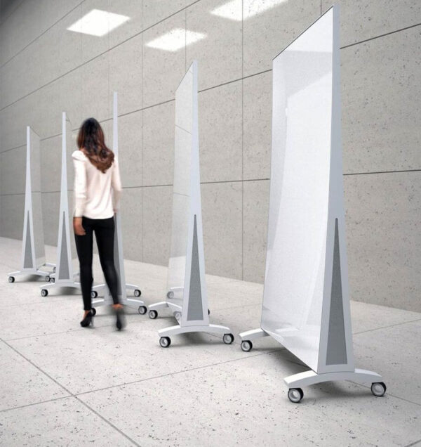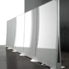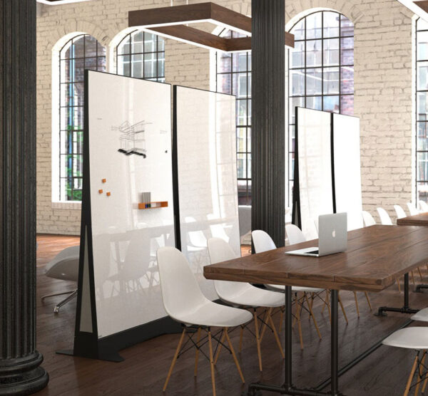 Glass Wall combines beauty and functionality as it allows you to reconfigure a space with mobile, free-standing wall partitions. The revolutionary glassboard design and multi-directional feet easily moves and transforms any space.