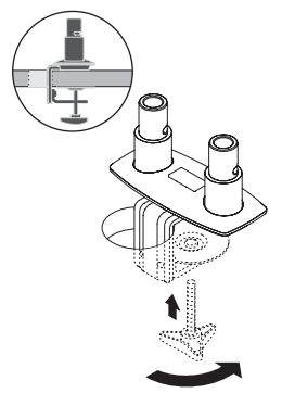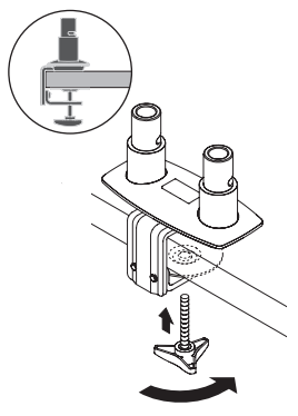 The dual monitor setup can be clamped to the desk edge or bolted through the desk.