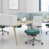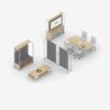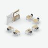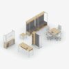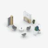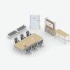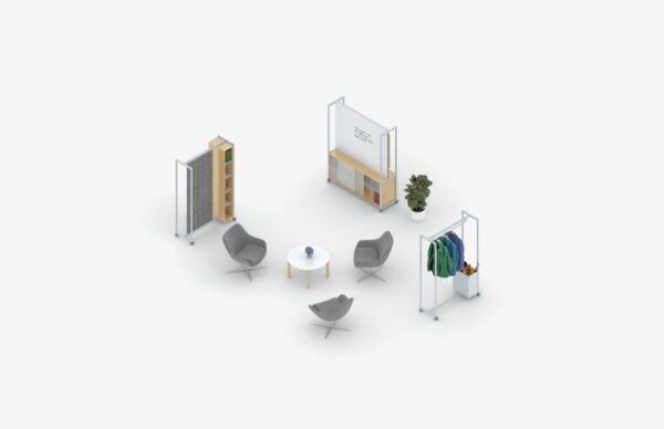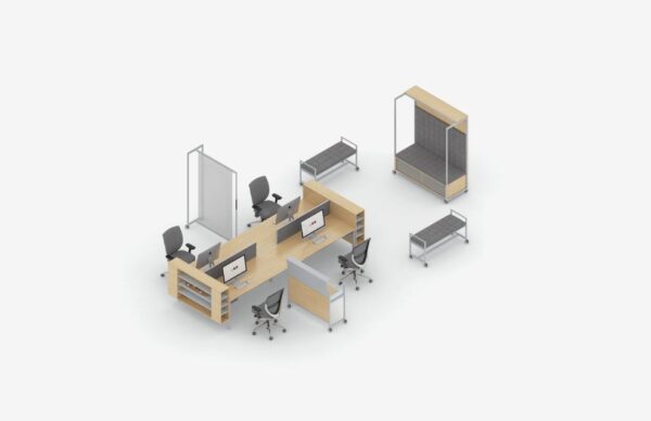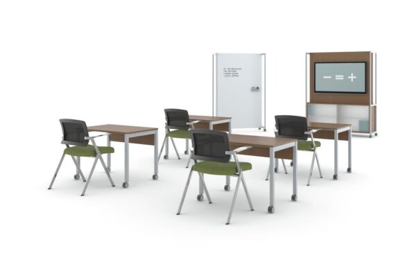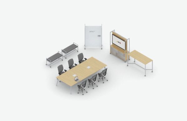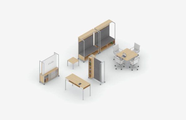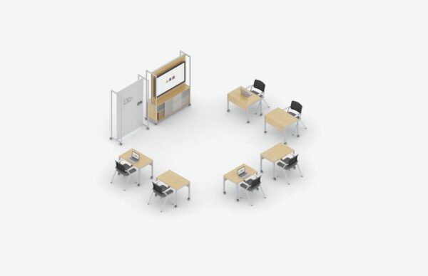 - Mobile Media and Seated Carts, Multi-Purpose Tables and Screens provide elements for privacy and media integration.