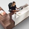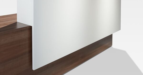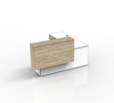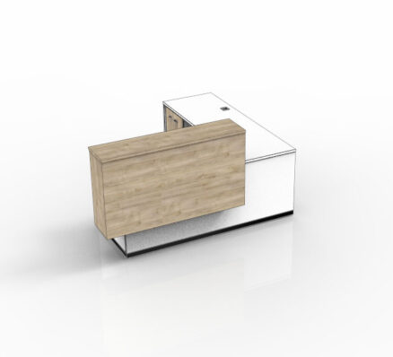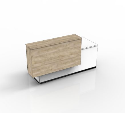 This modern, yet timeless reception desk affords ample functionality for both the user and the visitor with its wide transaction space and available storage options.