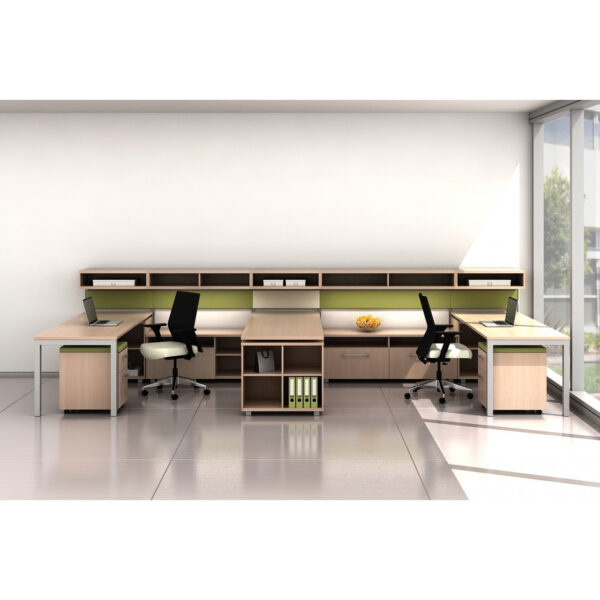 There are some big shifts going on in the world of facilities. The recession has made companies more frugal. Real estate per person has shrunk. Employees have become more mobile. Work has become more collaborative. Environmental concern, and its interpretation within LEED guidelines, has changed interior design, moving employees toward the windows and dropping panel heights to foster natural light penetration. And to address these multiple factors, benching systems were developed. Trendway Trig was not the first, but they have watched to see what worked and didn’t work from the first product lines introduced, and tried to bring the best elements to Trig, at a more than competitive price point. Better still, Trig integrates with Trendway Choices and shares the same finishes as Trendway Intrinsic casegoods, so your whole facility will coordinate. And best of all, it’s from Trendway, so it will be On Time or Free.