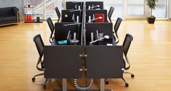 Essentia’s unique, hardwired power distribution system is UL962 listed and replaces bulky power distribution troughs and old-fashioned panel systems by enabling you to power up to 10 workstations from a single in-feed. The Essentia Benching system is fully compliant with BIFMA G1-2013 Ergonomic recommendations for height adjustability and is Greenguard Gold certified.