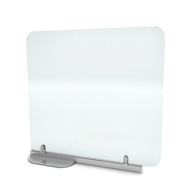 This freestanding, weighted base was designed to separate patrons in bars but has many applications, including benching workstations. The benefit is that it extends out past the edge of the surface, to shield people side to side where they actually sit. And because it doesn’t require any installation, you can move it where you need it at any time.